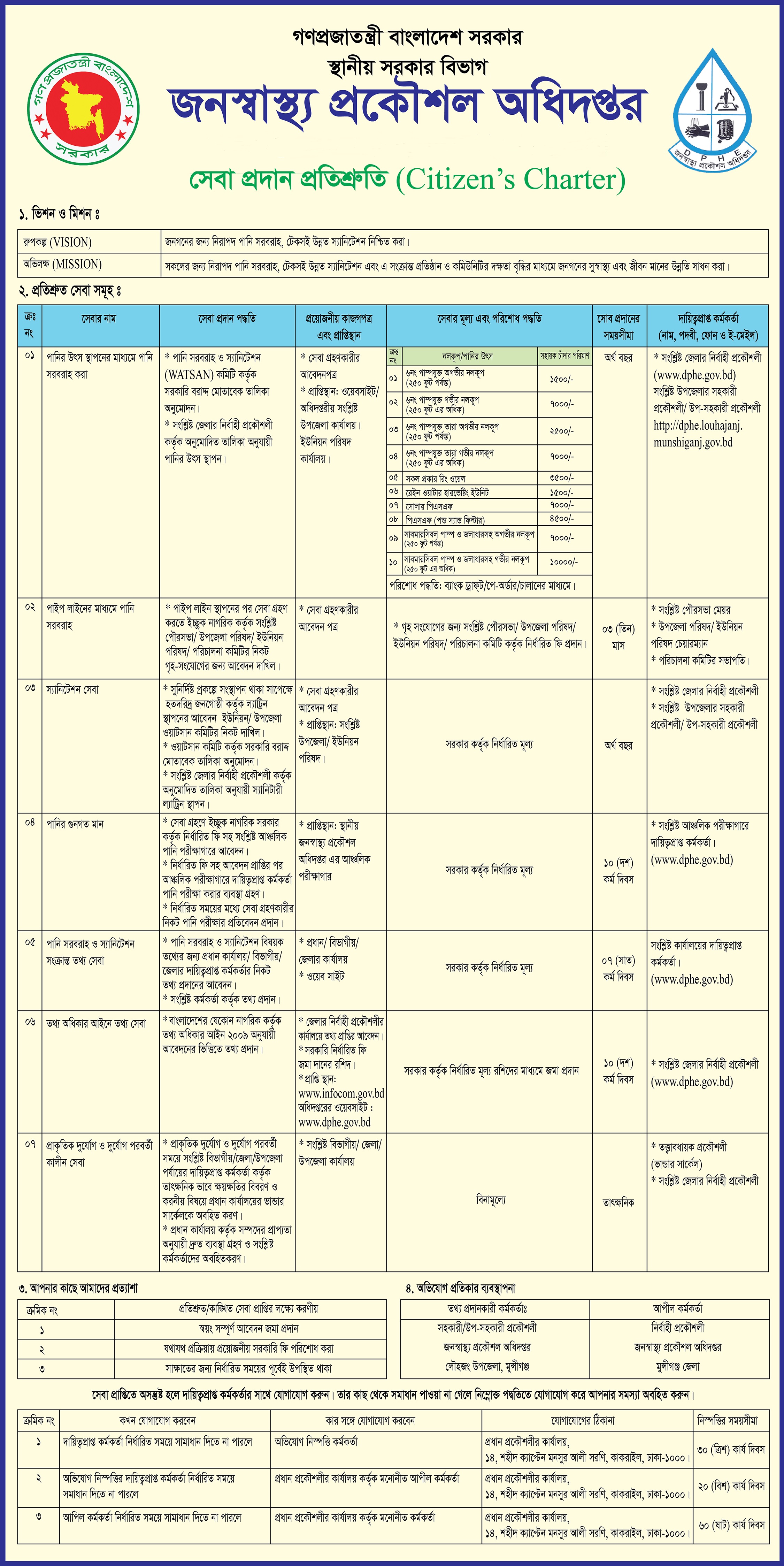 ৬. | পানি সরবরাহ ও স্যানিটেশন বিষয়ক তথ্য সরবরাহের অনুরোধ | ৩ কর্ম দিবস |